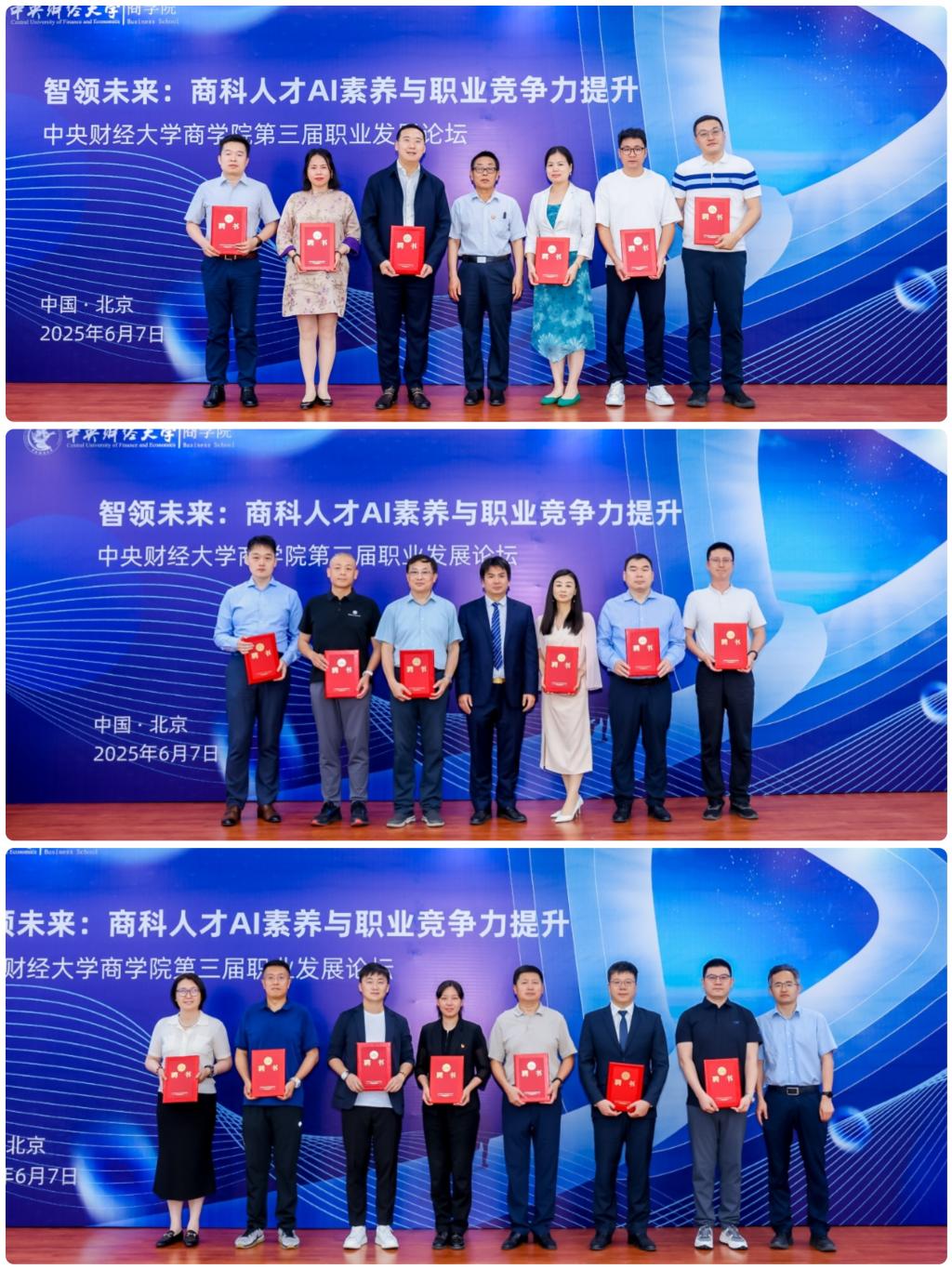 2025年6月7日,“智领未来:商科人才AI素养与职业竞争力提升”新葡的京集团350vip8888首页第三届职业发展论坛在学院南路校区主教楼114会议室隆重举行。本次论坛由新葡的京集团350vip8888首页主办,新葡的京集团350vip8888首页职业发展中心承办。新葡的京集团350vip8888首页学生工作部部长、学生处处长、武装部部长陈振,新葡的京集团350vip8888首页党委书记李跃新,新葡的京集团350vip8888首页院长兼MBA教育中心主任林嵩,新葡的京集团350vip8888首页各系系主任和北京思特奇信息技术股份有限公司副总裁兼投资总监钟鸣华,西部证券股份有限公司财富业务决策委员会主席、信用业务决策委员会主席、总经理助理殷涛以及师生校友100余人出席论坛。本次论坛还隆重举行了新葡的京集团350vip8888首页第二批企业导师的聘任仪式。本次论坛由新葡的京集团350vip8888首页党委副书记杨中英主持,圆桌论坛由新葡的京集团350vip8888首页战略系主任刘书博主持。