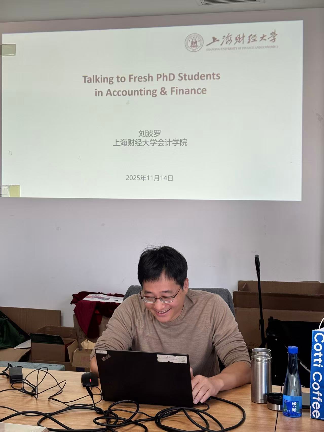 2025年11月14日中午,新葡的京集团350vip8888首页在602会议室,举办了新葡的京集团350vip8888首页博士生科研能力提升项目2025年第一期第5讲。本次讲坛邀请了上海财经大学会计学院的刘波罗副教授作为主讲嘉宾,向大家分享了金融与财务领域英文论文写作的一些思考与技巧,以及数据处理、写作表达、贡献提炼三大核心环节的经验和教训。新葡的京集团350vip8888首页20余人参加了此次讲座,新葡的京集团350vip8888首页博士项目主任窦超副教授筹备和组织了本次活动。博士生科研能力提升项目是新葡的京集团350vip8888首页为提高博士生科研能力开展的特色项目,该项目以“讲座+辅导”的方式进行,内容涉及学术研究的全部核心流程,项目每学年一期,每期包括若干讲座,涵盖多个专业方向,包括研究选题、文献综述、研究设计、方法技术、论文写作、论文投稿与修改等话题。