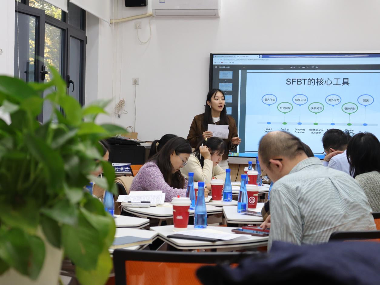 在这个活动中,刘卓然老师为辅导员们介绍了焦点解决中最具实操性的七大“工具箱”:量尺问句、应对问句、结果问句、关系问句、例外问句、奇迹问句、赞美问句,她讲解每个工具的技术要领与使用情境,然后辅导员们通过阅读理解经典咨询案例文本,逐一认识七大工具。