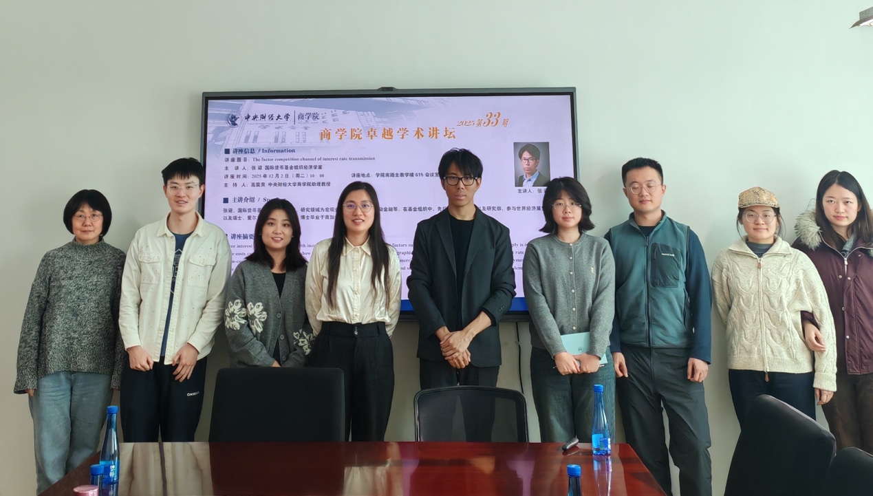 2025年12月2日(周二)上午10点,新葡的京集团350vip8888首页在学院南路校区主教学楼615会议室顺利举办了2025年第33期卓越学术讲坛。本次讲座特邀国际货币基金组织(IMF)经济学家张诏博士担任主讲嘉宾。新葡的京集团350vip8888首页的教师、博士生、硕士生以及其他高校的学者共计10余人参加了此次学术活动。