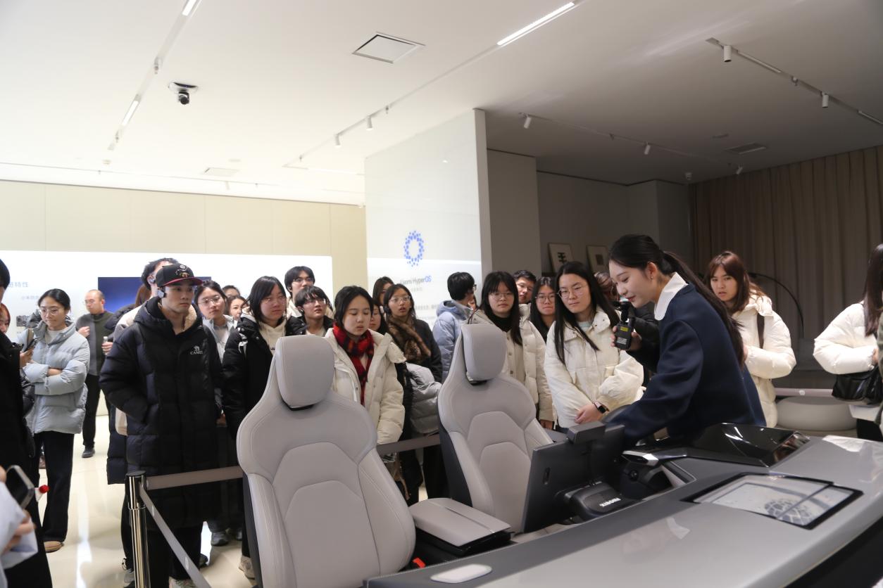 在科技展厅,企业讲解员围绕小米发展历程、核心技术布局与全产业链生态进行系统介绍。师生们近距离观摩了小米多款主力车型,详细了解各车型的设计理念、功能定位与风格特色,直观感受企业以用户需求为核心的创新思维;展厅内陈列的智能家居产品,进一步展现了小米跨场景生态融合的发展布局,让同学们对“科技服务生活”有了更鲜活的认知。