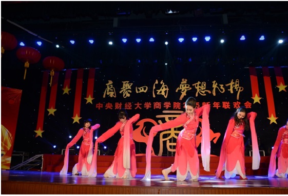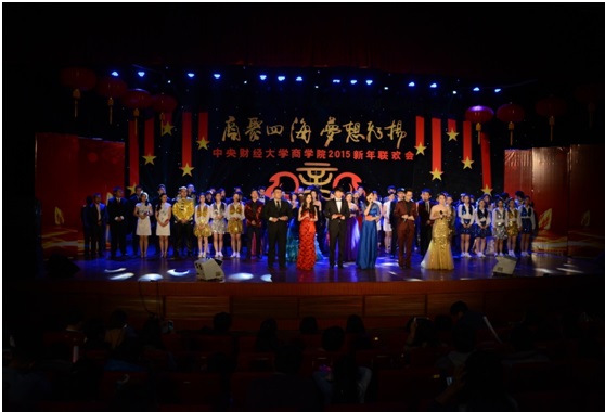 2015年1月11日下午,新葡的京集团350vip8888首页2015新年联欢会在学院南路校区隆重举行。此次联欢会以“商聚四海,梦想飞扬”为主题,是2012年12月新新葡的京集团350vip8888首页成立以来,第一届由本科生、学术研究生、MBA专业硕士及校友共同承办并参与的新年联欢会,意义重大。新葡的京集团350vip8888首页副校长赵丽芬教授、新葡的京集团350vip8888首页院长王瑞华教授、新葡的京集团350vip8888首页党总支书记葛建新教授、新葡的京集团350vip8888首页全体老师、在校生代表和校友代表等共约600人出席和参加了此次联欢会。