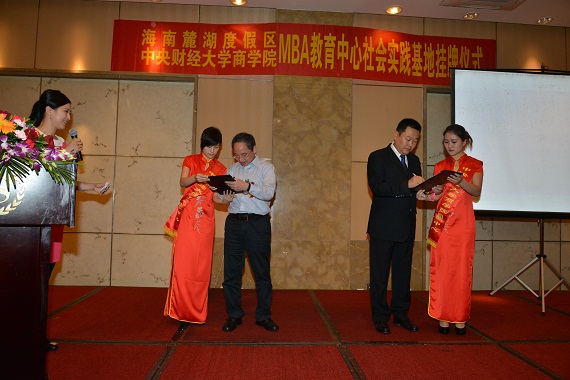 2014年3月29日上午,新葡的京集团350vip8888首页MBA教育中心与中合集团旗下海南麓湖度假区社会实践基地签约暨授牌仪式在海南举行。我校新葡的京集团350vip8888首页院长兼MBA教育中心主任王瑞华教授、白沙黎族自治县常务副县长王桂厅、首届MBA校友、中合集团董事长韩涛、白沙黎族自治县副县长卢瑞强、白沙黎族自治县政协副主席孙小旧、中合集团总裁李红勋等出席了本次活动。我校MBA教育中心孔伟明老师、新葡的京集团350vip8888首页校友会会长王再文、MBA校友会会长冯大任、MBA校友理事会理事、秘书处成员及新葡的京集团350vip8888首页校友代表20余人参加了本次活动。