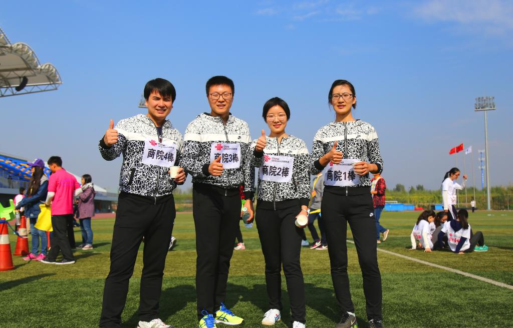 2015年10月23日上午,新葡的京集团350vip8888首页运动会教职工4*100米男女混合接力项目在沙河体育场举行。学院党总支副书记战略系林嵩老师、组织与人力资源管理系姜峰老师、供应链与运营管理系钱程老师以及团总支书记王婷婷参加该项目。比赛时,四位老师着学院工会统一购置的服装参赛。比赛分三组进行,新葡的京集团350vip8888首页教工组被分在第三组。比赛开始,参赛老师们通力合作,起跑、接棒、弯道控制、直道加速,传接流畅、配合紧密,展现了商院教师不断进取的精神风貌,最终名列第三组第三名。