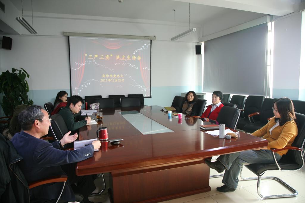2015年12月29日,新葡的京集团350vip8888首页党总支在主楼1411召开了“三严三实”专题民主生活会。赵丽芬副校长、新葡的京集团350vip8888首页党总支书记葛建新、院长王瑞华、组织员韩兰、副书记林嵩、副院长宋巧、MBA教育中心副主任贾晓菁参加了民主生活会。