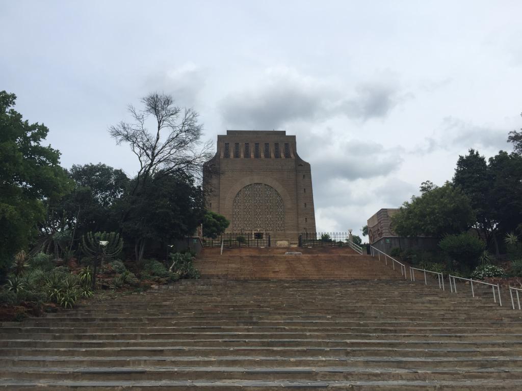 先民纪念馆位于比勒陀利亚市西郊的一处小山上,是一座高41米的方形建筑物。方形纪念馆外有一组由64辆水牛车浮雕组成的半圆形围墙,让人一下子就想起布尔人的牛车阵。绕方形纪念馆走上一圈,你会发现在外墙的四角雕刻有四位栩栩如生的人物塑像,他们就是布尔人的领袖雷蒂夫、波特基特、比勒陀利乌斯和一位无名氏领导人。在纪念馆大厅,首先映入眼帘的是环绕大厅四周墙壁上的白色大理石浮雕,它全长92米、高23米、重180吨。整组浮雕生动地再现了当年布尔人大迁徙的历史,给人留下了深刻的印象。
