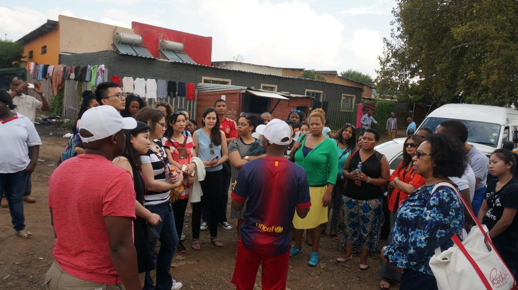 在索韦托黑人居住地区,Kliptown Youth项目组织负责人接待了我们,师生们参观了黑人的房屋、学校,了解了他们的生活和教育情况。在即将离开之际,学校里的孩子们还为我们带来了激情澎湃的歌舞表演,深深地震撼了在场的每一位师生。大家都迫不及待的希望可以为这些黑人小朋友们出一份力,大家还在一起商议了回国后准备为这些孩子发起募捐的事宜。