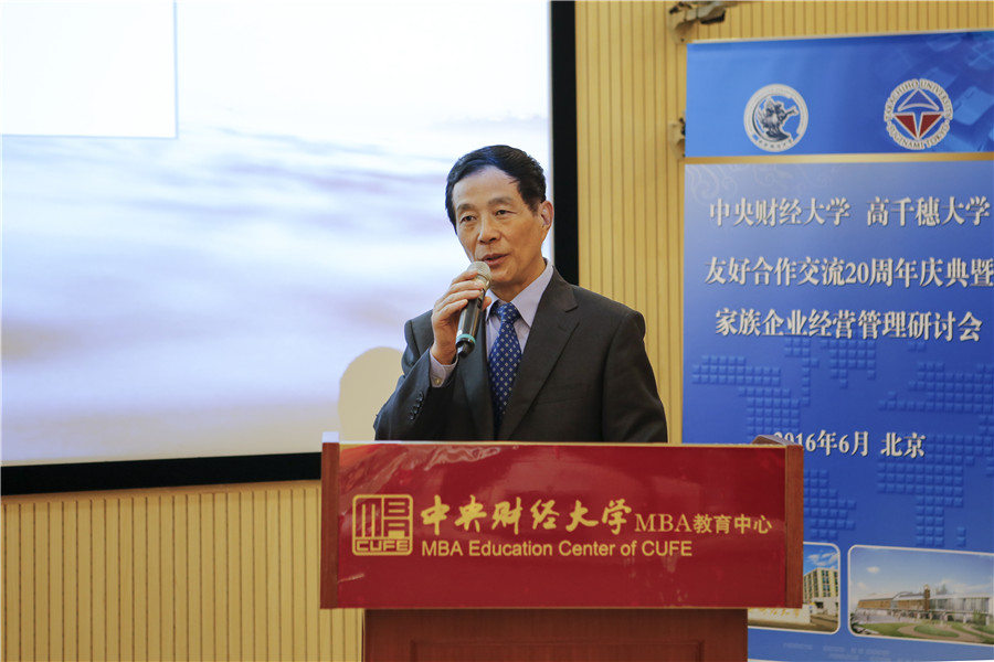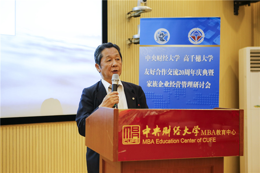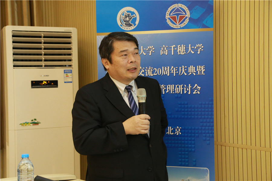 20周年庆典由李俊生副校长主持,王广谦校长、藤井耐理事长分别致辞。王广谦校长对两校合作迎来20周年表示热烈的祝贺,对前来参加庆典及相关学术活动的藤井耐理事长一行表示欢迎。他如数家珍地回顾了两校20年来取得的成果,指出两校1997年开始在会计、税收领域,2005年起在企业管理领域开展的合作研究取得了一系列重要成果,产生了广泛的学术影响,同时也培养了一批青年学者和学生,高千穗大学已经成为我校最重要的合作伙伴之一。王广谦校长希望,两校在未来日子里获得更广阔的交流合作,共同推动学术研究、人才培养向纵深发展,为推动世界和平和人类文明进步做出更大贡献。