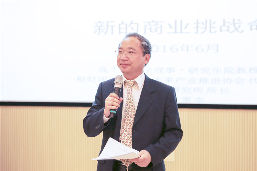 新津重幸教授的报告题目为“日本中小企业营销创新的方向与面临的挑战”,他从近年宏观经济环境的变化入手,通过对低出生率、老龄化对不同行业的影响探讨了营销创新的方向,以及日本中小企业尤其是家族企业面临的挑战。新津教授还分享了日本文具企业PLUS公司主动应对挑战、创新商业模式的案例。