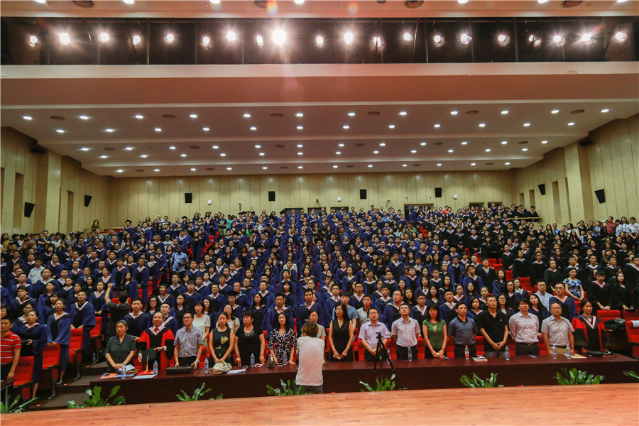 在庄严的国歌声中,新葡的京集团350vip8888首页2016届毕业生毕业庆典暨学位授予仪式正式开始。