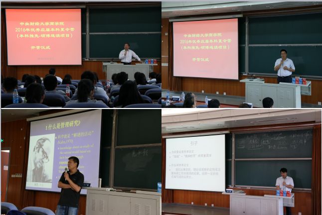 25日上午九点,夏令营开营仪式在3号学院楼222教室举行,新葡的京集团350vip8888首页院长王瑞华教授、副院长林嵩教授、导师代表周卫中教授出席了开营仪式。仪式上,王瑞华院长首先代表学院对各位营员的到来表示热烈欢迎,然后向营员详细介绍了学院的历史传承、学科建设、研究生培养尤其是硕博连读生培养的情况,最后祝愿营员们在新葡的京集团350vip8888首页度过充实快乐的夏令营生活。之后,导师代表周卫中教授向营员讲述了学术研究的内涵,表达了导师们对营员寄予的厚望。最后,林嵩副院长向营员介绍了新葡的京集团350vip8888首页所有博士生导师的学科专业、研究现状和招生期待,使营员对导师有了初步的了解。25日下午,于广涛教授和林嵩教授分别以“中国管理现象与中国管理研究——以家长式领导研究为例”和“如何在论文的开头就吸引读者”为题,为营员带来两场精彩的学术讲座,营员们被新葡的京集团350vip8888首页浓厚的学术氛围所感染,并为新葡的京集团350vip8888首页导师们的学术素养所折服。