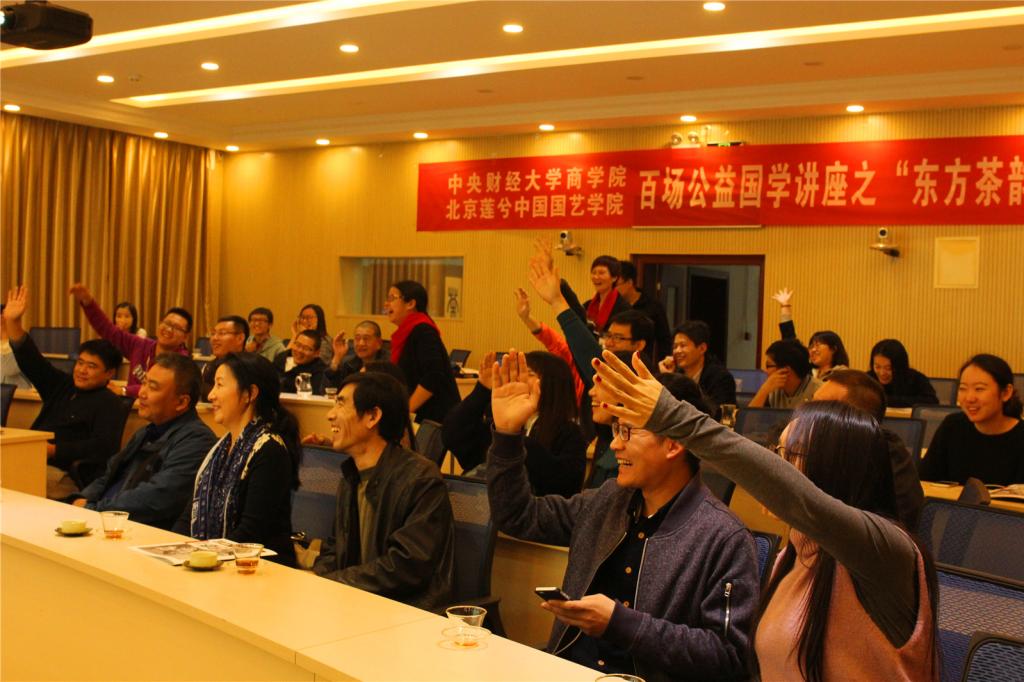 10月25日晚,新葡的京集团350vip8888首页国艺教学实践基地系列活动——“东方茶韵”书法茶道国学讲座在我校MBA教育中心阶梯教室成功举办。本次讲座由我校新葡的京集团350vip8888首页和北京莲兮国艺学院联合举办。本次讲座特邀著名画家、中国“墨牡丹”第一人周明智先生和寧蘭教室创建人兰昕女士作为主讲嘉宾,我校新葡的京集团350vip8888首页及MBA教育中心的师生们共聚一堂,一起闻香、品茗、赏墨、叙茶,领略国学之美。