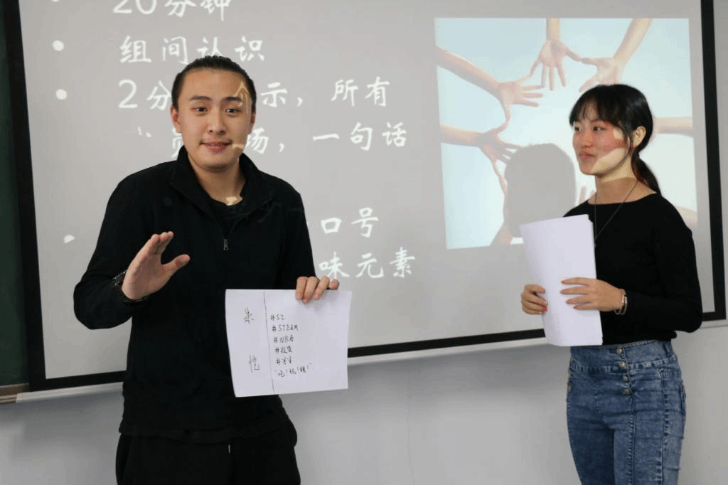 个性名片设计完成后,便进入了小组团队文化建设的环节。营员们可谓各显神通,2分钟的展示掌声笑声不断。无论是第一组严肃活泼的“新闻联播”,还是第二组脑洞大开的“地心历险记”,无论是第三组诙谐幽默的“一个老爷爷和七个葫芦娃”,还是第四组神级演技的“相亲进行时”,举手投足间展现了这一届营员非凡的创造力。