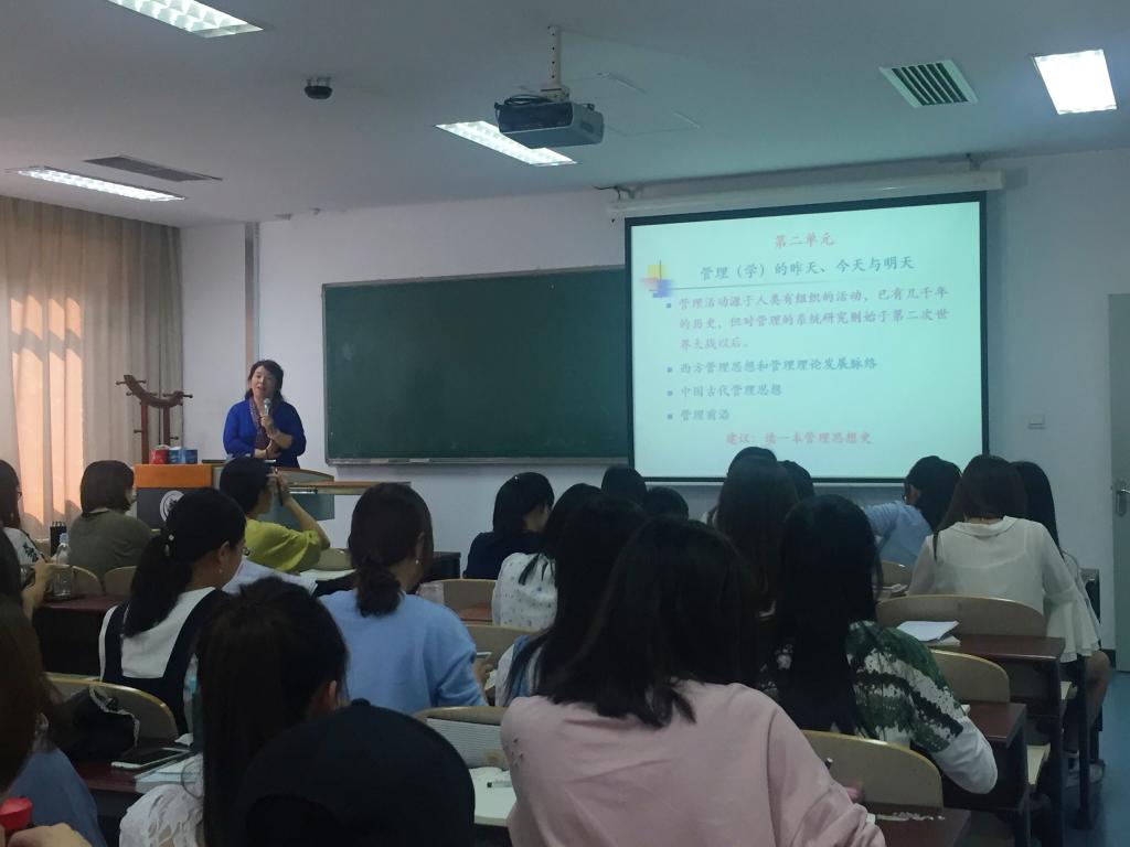 一直以来,赵丽芬校长每年秋季学期都为新葡的京集团350vip8888首页硕士研究生新生讲授《管理学理论与实务》的课程。她春风化雨般的教学将管理学从书本上的一个一个文字具化成形象的知识让同学们能够愉快的吸收和了解,同时也根据自己的经历与经验为新葡的京集团350vip8888首页硕士研究生新生指明前进的方向,指引他们更好的成长。正像赵副校长去年12月21日为学院全体教职工党员党课上所要求的一样:每一名教师都应该做好表率、尽职尽责做好自己的本职工作。教师要做“有理想信念、有道德情操、有扎实知识、有仁爱之心”的“四有”好老师,做好学生锤炼品格、学习知识、创新思维和奉献祖国的“四个引路人”。只有这样,我们新葡的京集团350vip8888首页才能为发展具有中国特色的现代教育、培养社会主义事业建设者和接班人做出更大的贡献。