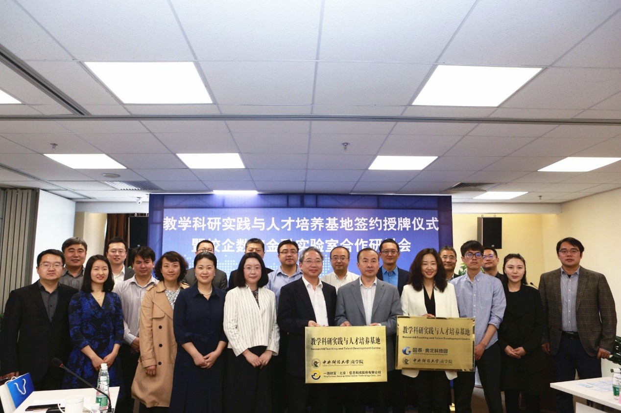 校企合作求务实,实事求是谋发展。4月19日上午,新葡的京集团350vip8888首页教学科研实践与人才培养基地签约授牌仪式暨校企数字金融实验室合作研讨会在奥北科技园国泰大厦圆满举行。新葡的京集团350vip8888首页院长王瑞华,新葡的京集团350vip8888首页党委书记葛建新,副院长林嵩,副书记王容,副院长于广涛,国泰集团董事长何泽平,国泰集团副总裁、一路财富董事长吴雪秀,北京市互联网金融协会秘书长郭大刚,微瑞思创董事长夏振宇,无限讯奇执行董事杨保宁,神策数据分析总监陈新祥,璇玑战略副总裁兼运营首席执行官邱琦,金融魔方CEO刘嘉、一路财富人力资源总监张妍及新葡的京集团350vip8888首页王毅、李季、刘小元、代宏砚、姚凯、刘书博、孔伟明、陈明博、栾天等嘉宾共同出席本次活动。