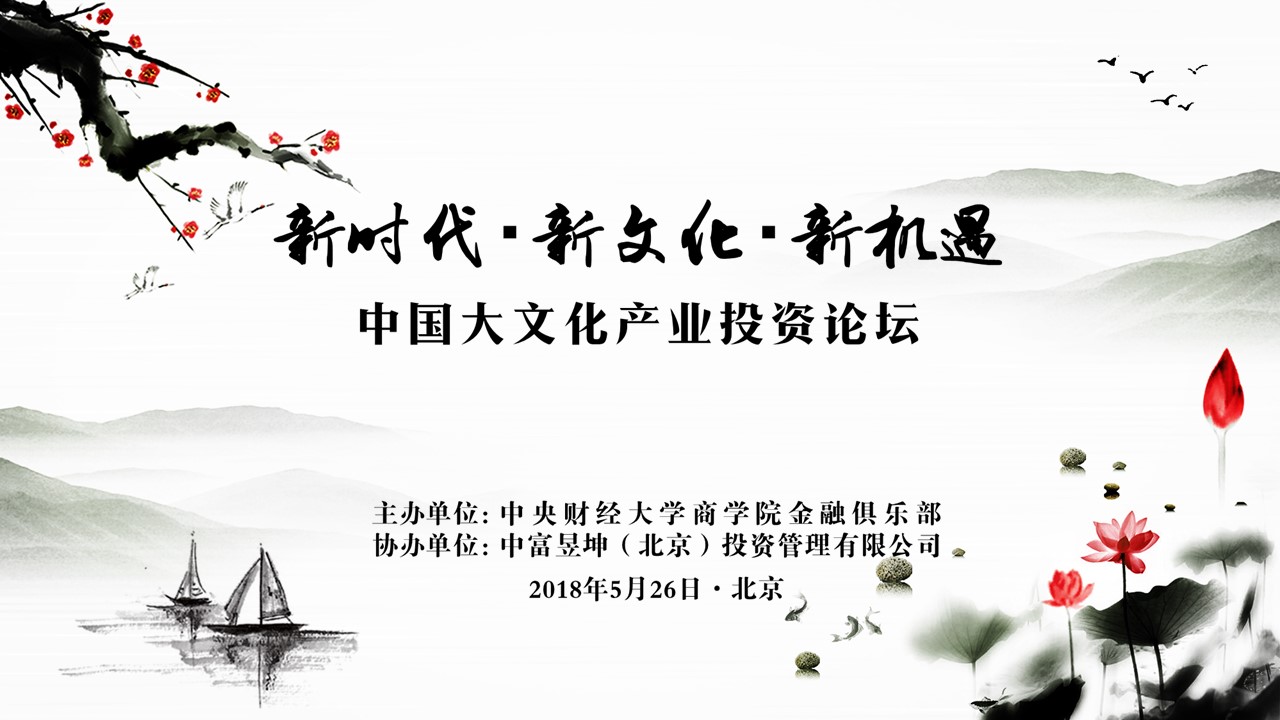 新时代引领新文化,新机遇创造新未来!2018年5月26日,中财新葡的京集团350vip8888首页金融俱乐部与中富昱坤(北京)投资管理有限公司共同主办的“新时代•新文化•新机遇——中国大文化产业投资论坛”,在新葡的京集团350vip8888首页学术会堂成功举办。
