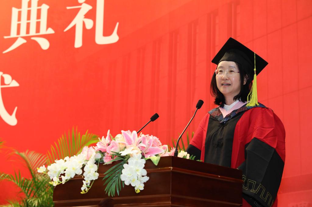 市场营销系李季副教授作为教师代表致辞。她对全体2018届毕业生表达了由衷的祝贺,并与大家分享了自己的人生感悟。李季副教授提到,让人感到自豪和没有遗憾的事情大多与金钱、地位、名誉无关,而是关乎整个社会的进步以及大多数人的幸福,她鼓励大家能够把“改变社会、造福人类”作为使命,将仁心与良知带到企业的经营和管理中。最后,她希望全体毕业生不以物喜,不以己悲,看自己,看当下,持正念,不负青春,不负此生。