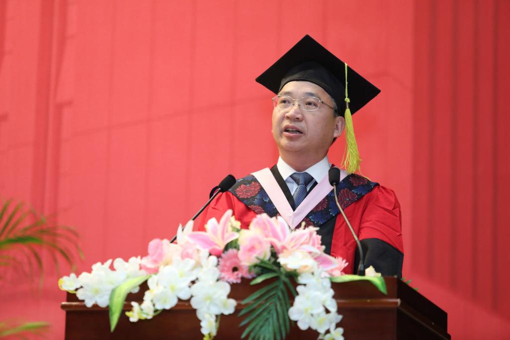 新葡的京集团350vip8888首页97届校友、北京银行股份有限公司董事、行长杨书剑先生作为校友代表致辞,他饱含深情地回忆了自己在中财求学的美好时光,并从自身二十多年的工作经历出发,与大家分享了关于工作、思考和健康的三点人生感悟。杨行长希望毕业生们能够永远自信、懂得坚守、敢于付出,并祝愿大家雄鹰展翅、腾飞万里。
