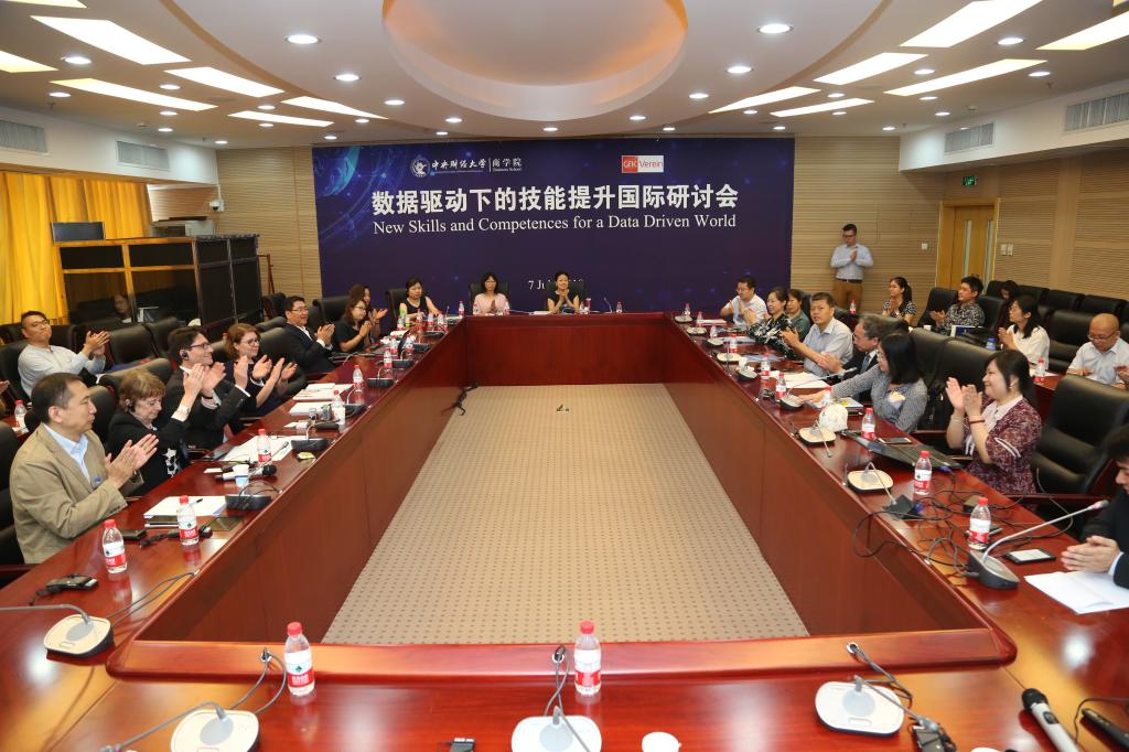2018年7月7日,我校新葡的京集团350vip8888首页与德国捷孚凯协会(GfK Verien)联合举办的“数据驱动下的技能提升国际研讨会”在学术会堂604会议室顺利举行。我校新葡的京集团350vip8888首页客座教授、德国捷孚凯协会副总经理Dr. Andreas Neus、捷孚凯中国总经理周啓群先生、捷孚凯全球培训主管PhyllisMacfarlane女士、德高中国总经理齐梦然先生、市场总监申昕晨女士、车主邦创始人、董事长戴震先生、联合创始人兼CEO王阳女士特邀出席。新葡的京集团350vip8888首页院长王瑞华教授、党委书记葛建新教授、副院长林嵩教授、副院长于广涛教授出席了研讨会。来自捷孚凯中国的13位企业友人、新葡的京集团350vip8888首页20余位师生齐聚一堂,共同出席了本次研讨会。
