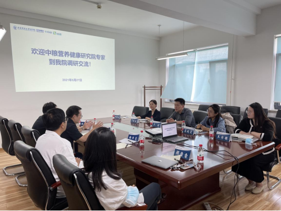 双方分别介绍了各自团队的研究专长、研究项目和合作需求,并对未来的合作研究和人才培养工作进行了交流。当日,中粮营养健康研究院正式向我院本科生、硕士生提出了实习项目的邀请,欢迎新葡的京集团350vip8888首页的优秀在校生前往研究院实习锻炼。