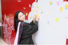 入场时,学院特邀的中央音乐学院小提琴四重奏乐队在学术会堂出口处为毕业生奏响了青春的旋律,烘托出欢愉而温情的氛围。乐队的旁边矗立着精心为毕业设计的留言墙,五颜六色的留言条上写满了毕业生对母校、恩师、同窗的难舍情谊和对未来的美好期望。
