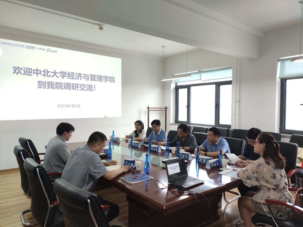 2021年7月7日下午,中北大学经济与管理学院院长赵公民、副院长彭佑元、副院长张克勇一行六人莅临我院开展交流活动。新葡的京集团350vip8888首页院长林嵩、副院长于广涛参加会谈。