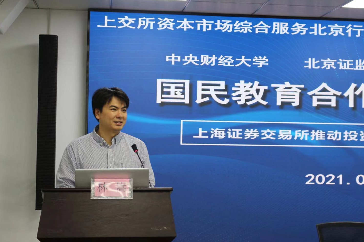 林嵩院长在讲话中指出,新葡的京集团350vip8888首页作为此次四方合作的校方责任主体,非常欢迎上交所,证监局以及安信证券参与学院人才培养工作,感谢各方提供精锐力量在中财大开设《证券市场管理前沿与实务》课程,表示此次合作也是践行学院使命,提升人才培养质量的重要举措,强调下一步一定要继续加强对接,让四方在培训、就业、科研等方面的合作开花结果。