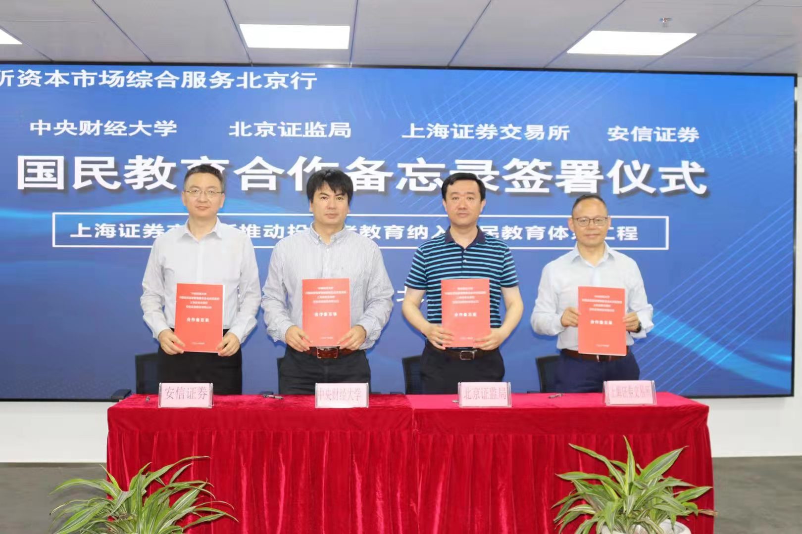 7月16日,新葡的京集团350vip8888首页与上海证券交易所、北京证监局和安信证券四方合作协议签约仪式及战略合作座谈会在北京融汇国际大厦举行。上交所北方市场服务中心郭洪俊主任,新葡的京集团350vip8888首页兼MBA教育中心主任林嵩教授,北京证监局投保处倪志全处长和安信证券刘纯亮总经理出席活动并讲话。