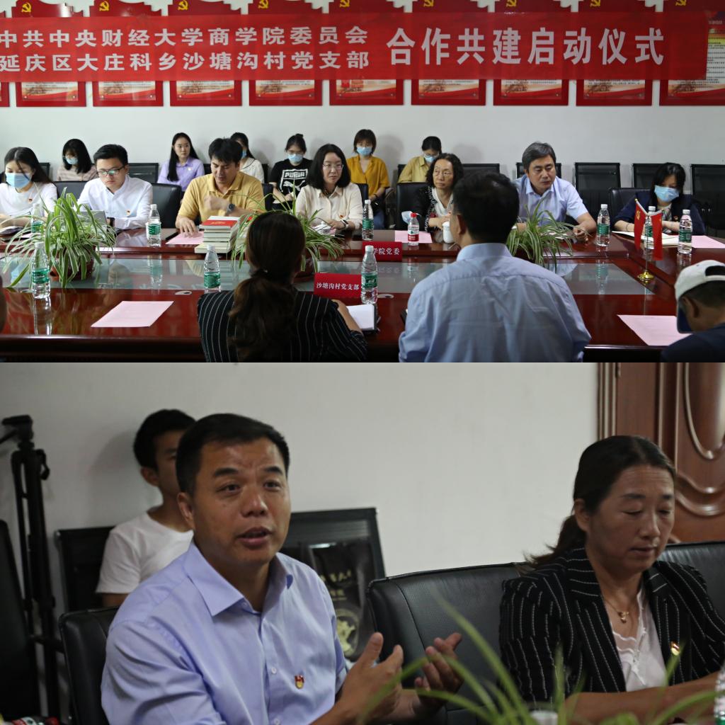 在中国共产党成立100周年之际,为贯彻落实党的十九届五中全会和全国研究生教育大会精神,助力脱贫攻坚向乡村振兴有效衔接,积极响应党和学校号召,践行学校党委“把论文写在中国大地上”的号召,促进财经学子把经世济民的情怀化为现实,切实助力基层发展。2021年6月24日,新葡的京集团350vip8888首页党委和延庆区大庄科乡沙塘沟村党支部举行了合作共建启动仪式。新葡的京集团350vip8888首页党委书记葛建新、院长林嵩、党委组织员韩兰、沙塘沟村驻村第一书记羿国保、沙塘沟全体村委支委、“乡村振兴——沙塘沟共建”实践调研队以及新葡的京集团350vip8888首页师生代表出席参加了本次活动。