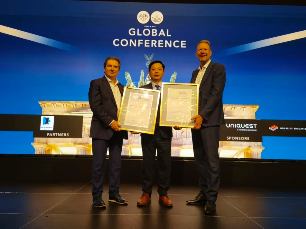 During the conference, a certification award ceremony was held for newly accredited institutions. Prof. Zhu Fei received the certificate for CUFE Business School's third AMBA reaccreditation and first BGA accreditation. He also took a commemorative photo with AMBA and BGA International Accreditation Advisory Committee Chief Executive Andrew Main Wilson and Committee Chair Prof. Steef van de Velde.