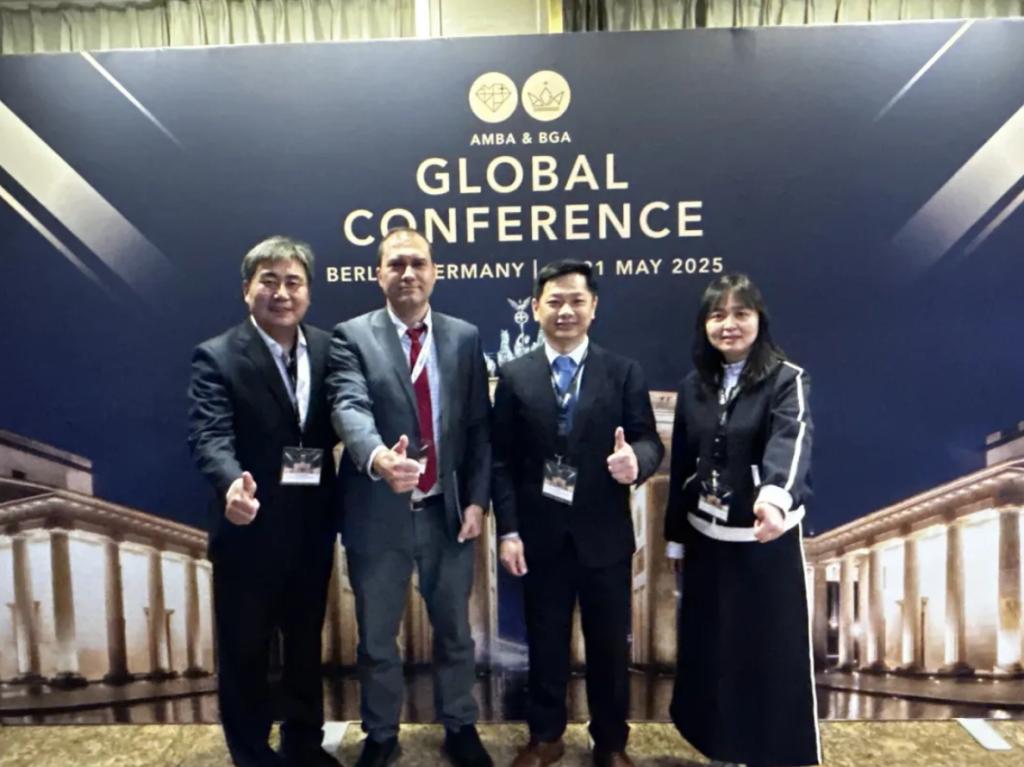 Prof. Zhu Fei, Deputy Director of the MBA Education Centre and Vice Dean of CUFE Business School, was invited to lead a team to attend the 2025 global annual conference of the Association of MBAs (AMBA) and the Business Graduates Association (BGA), held in Berlin, Germany from May 19th to 21st. Also in attendance were Kong Weiming, Director of MBA Student Affairs and Career Development, and Prof. Guo Xin from the MBA Teaching Management Department. The conference gathered deans of top business schools worldwide, academic leaders, and industry experts to explore the innovative development of business education in the AI era and its future direction. Prof. Zhu Fei represented CUFE Business School to share the π-shaped talent development philosophy and model of CUFE MBA at the China Business School Special Session of the conference and had extensive exchanges and discussions with representatives of other business schools on the topic.
