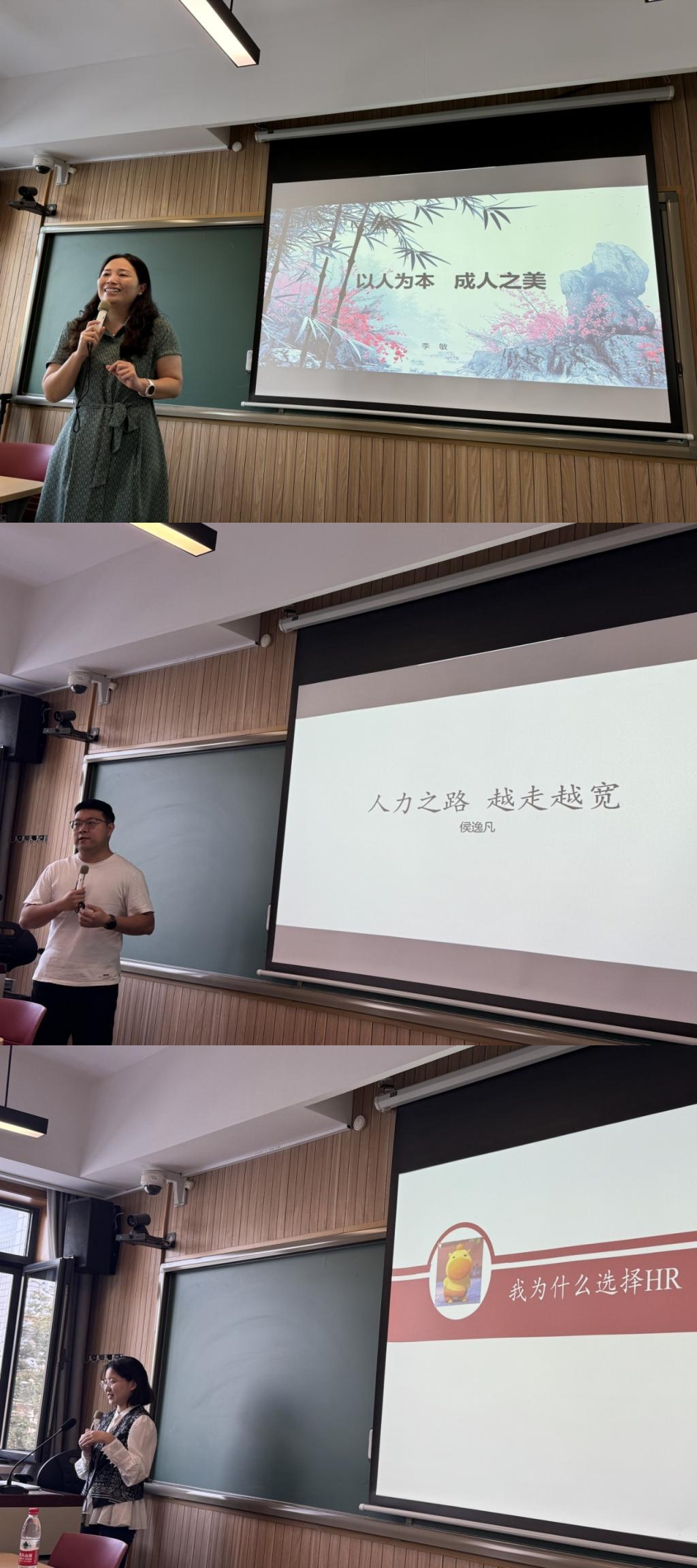 Hou Yifan, an undergraduate alumna of the HR Management major (Class of 2014) and a postgraduate alumna of the same major (Class of 2018), shared his practical experience in HR work in the banking system under the title of "The Path of HR Keeps Widening". He emphasized the unique advantages of HR positions as a career starting point and how to achieve common growth of individuals and organizations in the financial industry with strict supervision and high requirements. Alumna Hou Yifan shared the comprehensive ability improvement brought by HR work and put forward three core suggestions for students' career planning: first, consolidate professional foundations and master HR management theories and tools; second, broaden practical horizons and step out of the campus more often; third, pay attention to macro trends and cultivate political sensitivity and social insight. In addition, he also recommended books related to career development to help students deepen their professional cognition and improve their thinking pattern.