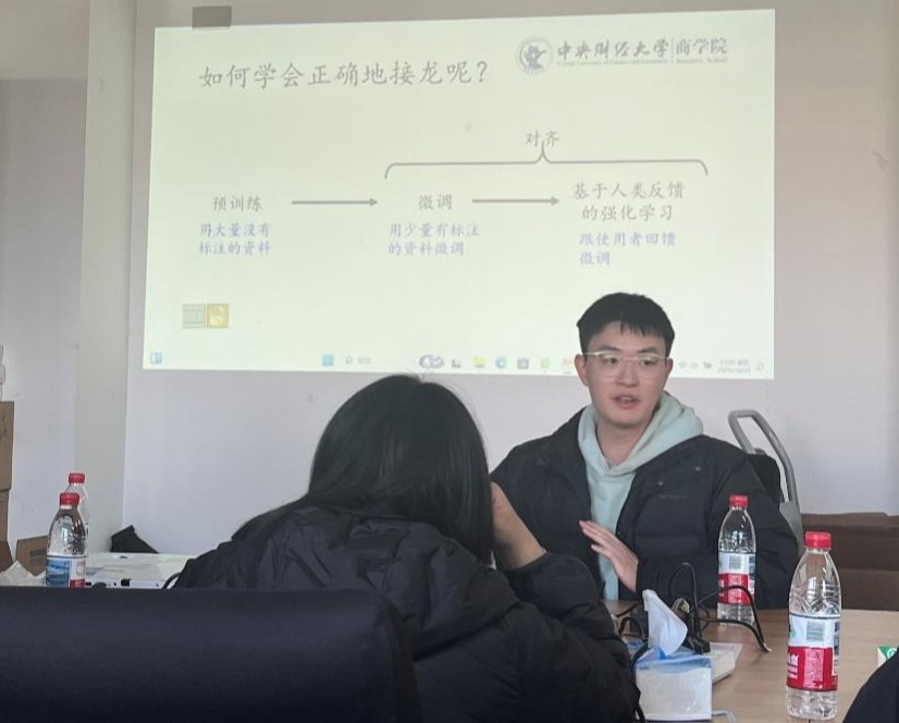 On the afternoon of October 31, 2025, CUFE Business School held the 4th Lecture of the 1st Phase (2025) of the PhD Research Competence Enhancement Program in Conference Room 602.The lecture invited Assistant Professor Chen Jingchuan from the Department of Supply Chain and Operations Management, CUFE Business School, as the keynote speaker. He shared the basic principles of large language models and their applications in business research with the participants. Nearly 20 members of CUFE Business School attended the lecture, and Associate Professor Dou Chao, Director of the PhD Program at CUFE Business School, planned and organized the event.The PhD Research Competence Enhancement Program is a featured initiative launched by CUFE Business School to improve the research capabilities of doctoral students. Implemented through a combination of "lectures + tutoring", the program covers all core processes of academic research. It runs once per academic year, with each phase including several lectures across multiple professional directions. The topics covered include research topic selection, literature review, research design, methodological techniques, paper writing, and paper submission and revision.