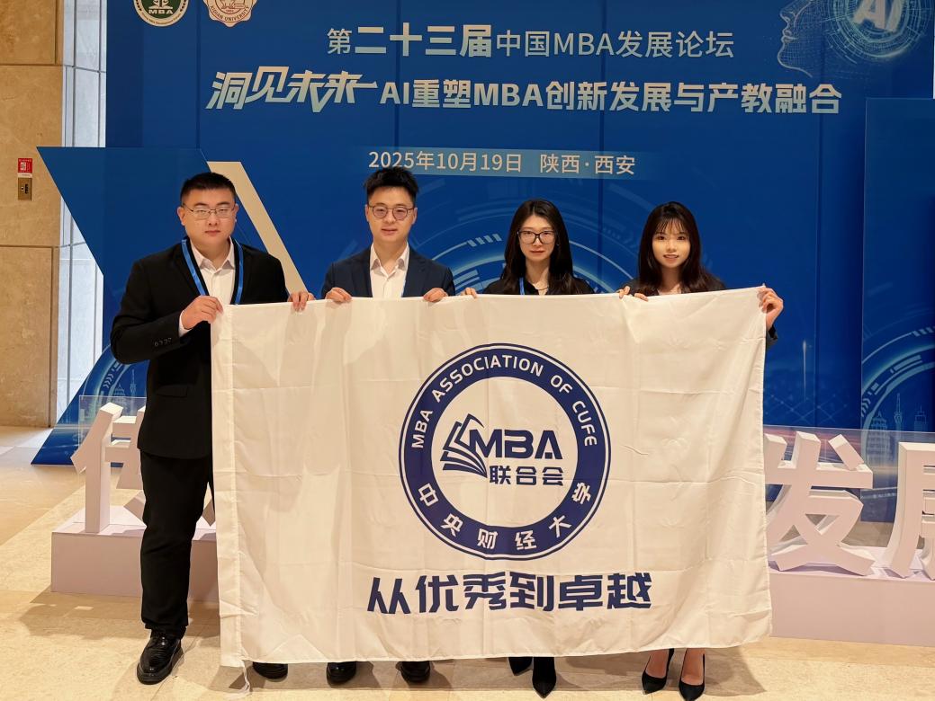 The 23rd China MBA Development Forum was grandly held in Xi'an with the theme of "Insight into the Future - AI Reshapes MBA Innovative Development and Industry-Education Integration". It brought together experts and scholars from more than 150 universities across the country, management executives from leading enterprises, as well as MBA teachers, students and alumni to jointly discuss industry development trends in the era of artificial intelligence and the innovative integration of MBA education.CUFE MBA students Zhang Zhenhao, Hua Nan, Yu Guolei and Wang Ziqiu participated in this forum.